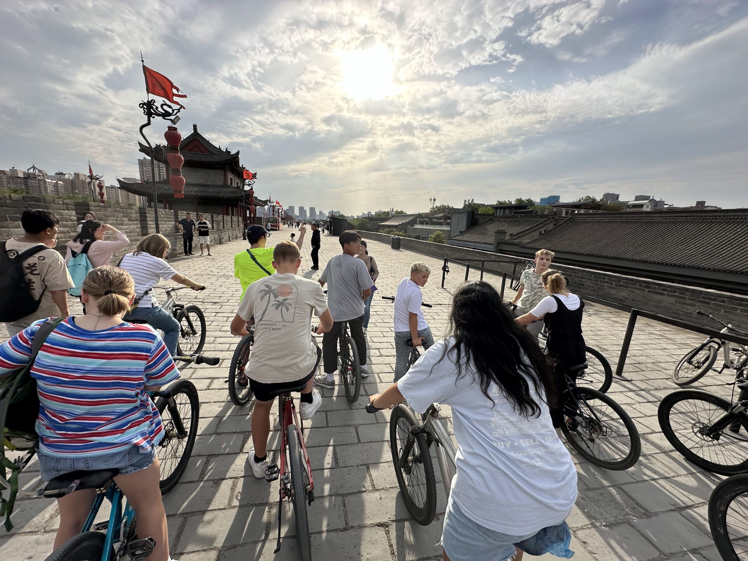 While in Xi’an, our group stayed at Northwest University, where we toured the campus, interacted with students, and even joined real Chinese classes tailored to our language levels. We explored the birthplace of Taoism at Zhongnan Mountain, visited the science park with giant pandas and golden monkeys, and learned traditional arts such as knot-tying, calligraphy, and Chinese songs. Highlights also included seeing the world-famous Terracotta Warriors, cycling along the ancient City Wall, and shopping at the lively Muslim Street market.